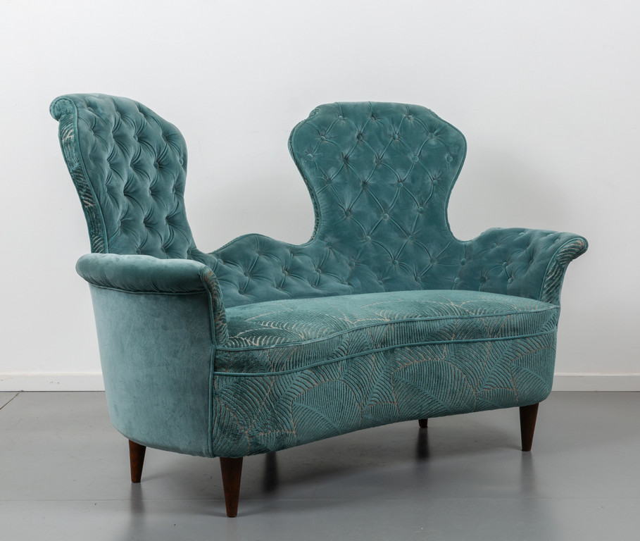 Struttura e gambe in legno imbottiture rivestite in velluto.