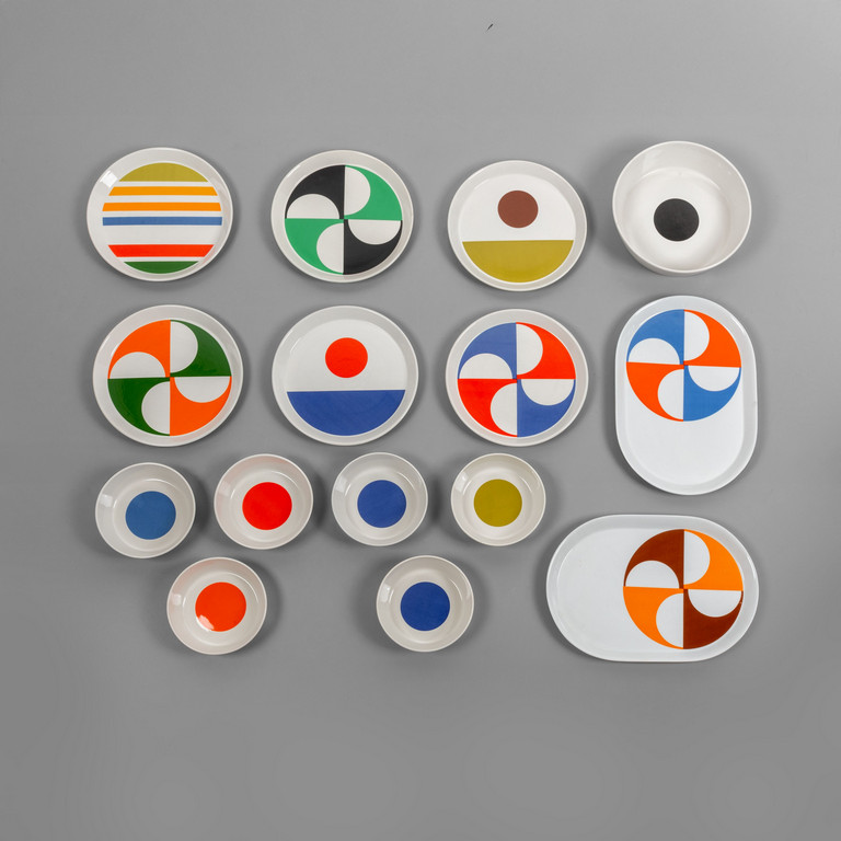 Un servizio da tavola in ceramica con decori geometrici policromi della serie 'Fantasia Italiana' composto da: