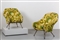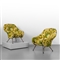 Struttura in acciaio gambe in ottone con puntali in plastica imbottiture rivestita in tessuto.