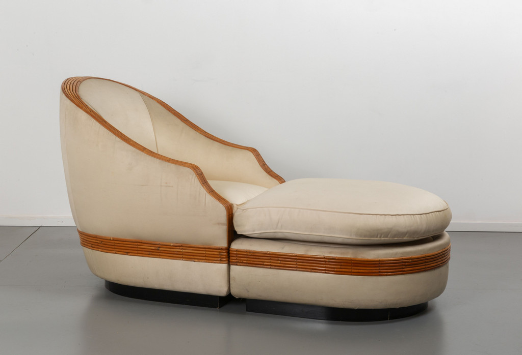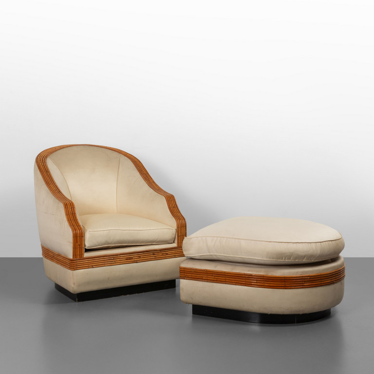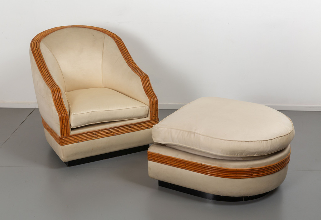 Legno laccato giunco imbottiture rivestite in tessuto.