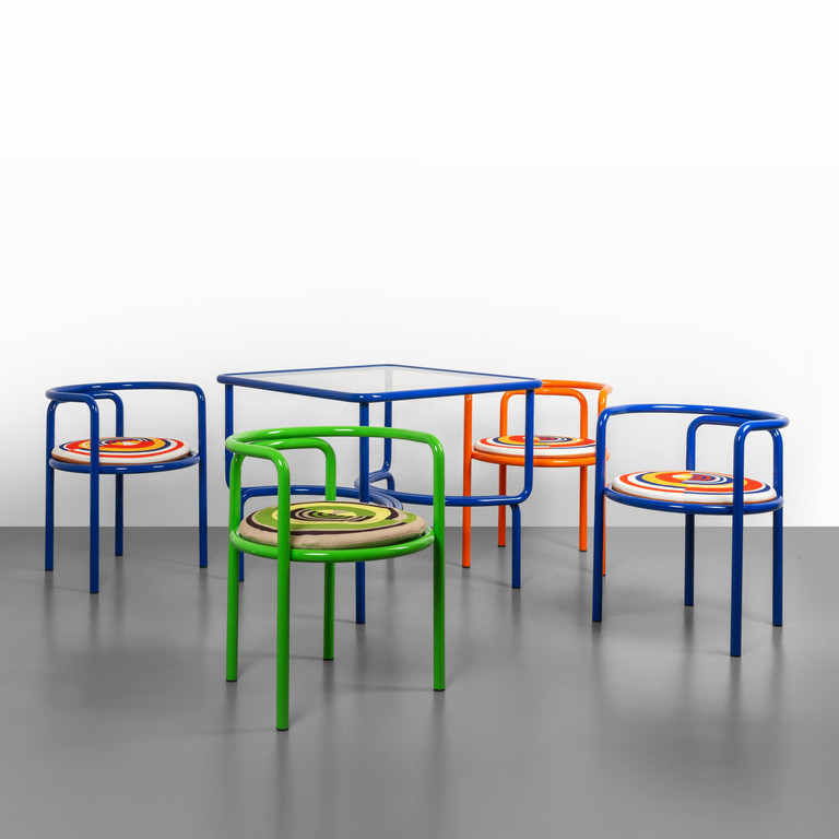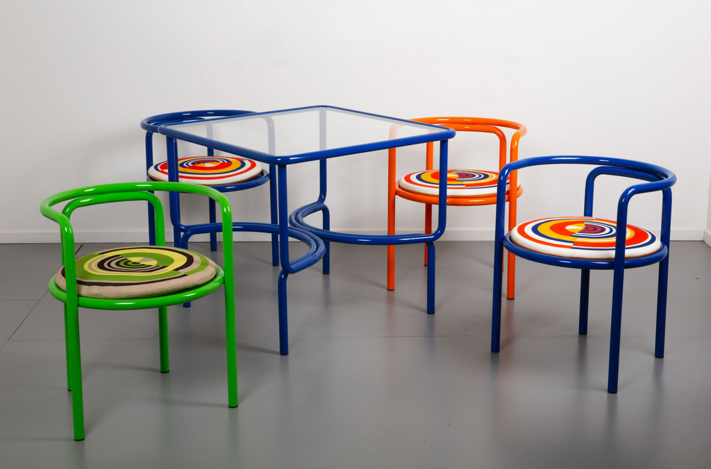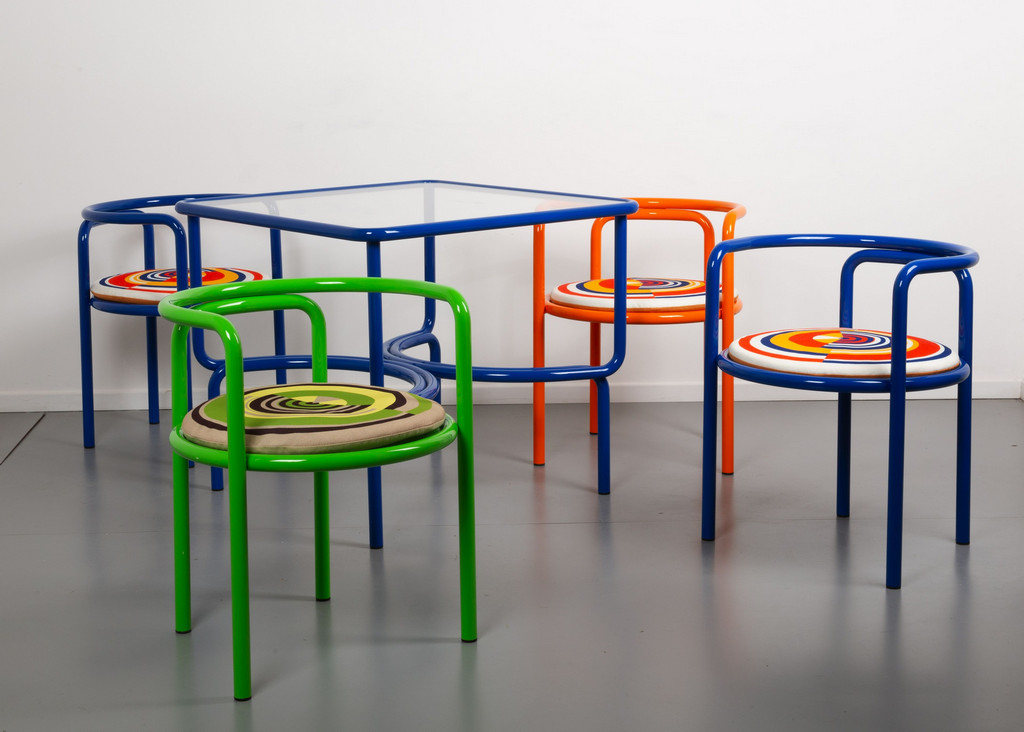 Four armchairs and a table from the 'Locus Solus' series.