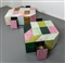 Wooden structures covered with a mosaic of cast glass tiles with variegated colors.