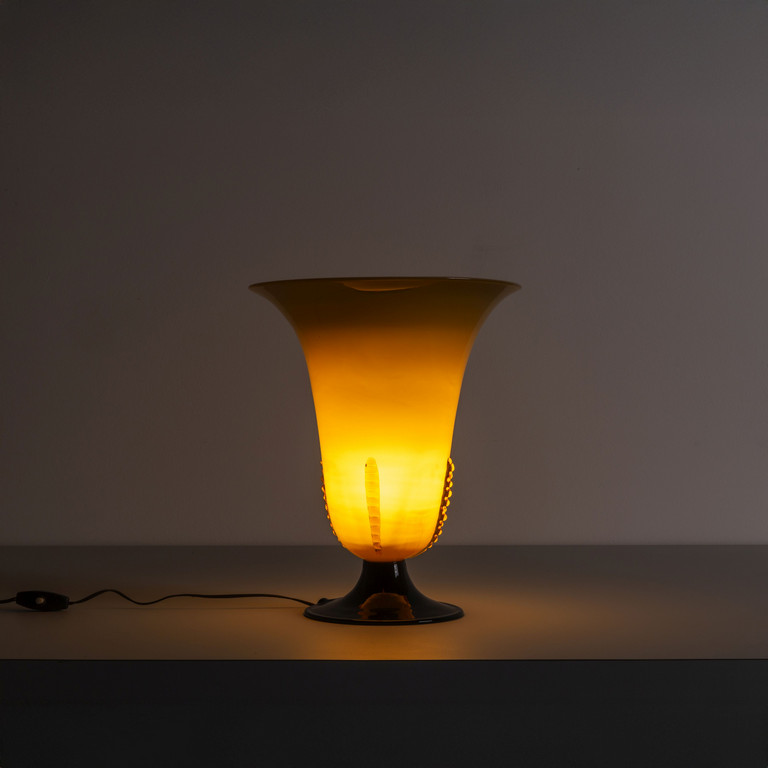 Base in black glass paste diffuser in amber glass cased with application of morise.
