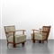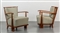 Legno di noce sedute e schienali con struttura in legno ed imbottiture rivestite in tessuto.