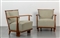 Walnut wood seats and backrests with wooden structure fabric upholstery.