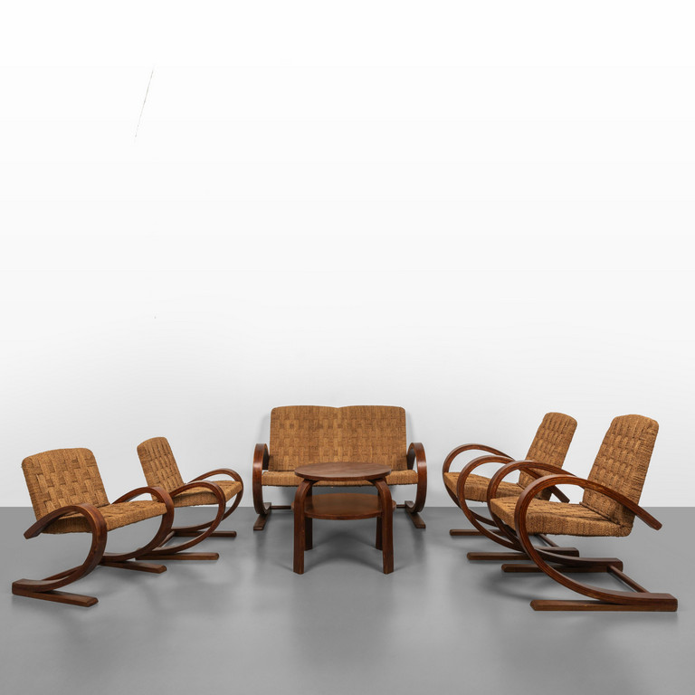 UN DIVANO QUATTRO POLTRONE E UN TAVOLINO anni '40.