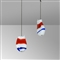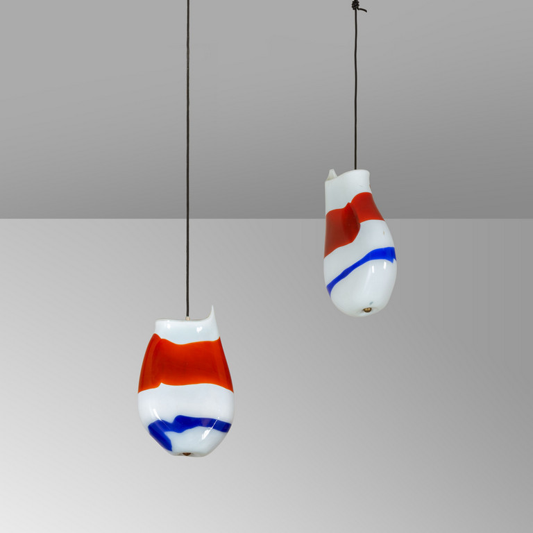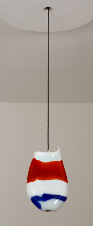 Vetro lattimo decorato con fasce orizzontali arancio e blu.
