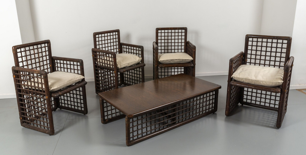 Quattro poltroncine e un tavolino della serie 'Basilian I'.